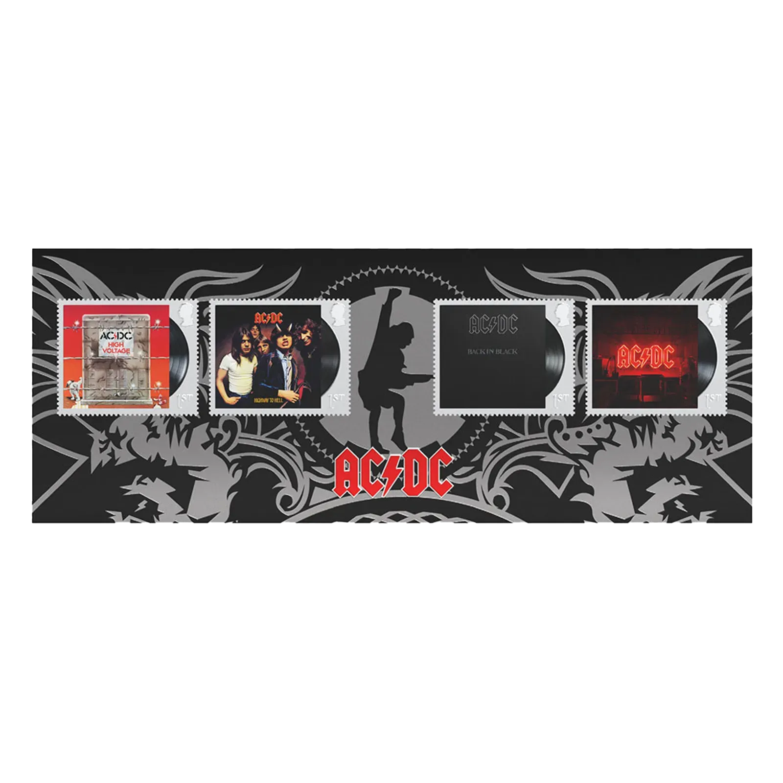 The four stamps are set against the distinctive artwork from the 2008 album Black Ice, and enhanced by the eye-catching shiny platinum finish throughout the design. The platinum sheet is safely housed in a protective capsule and comes presented in a deluxe all-black slipcase with large silver-foiled AC/DC logo.