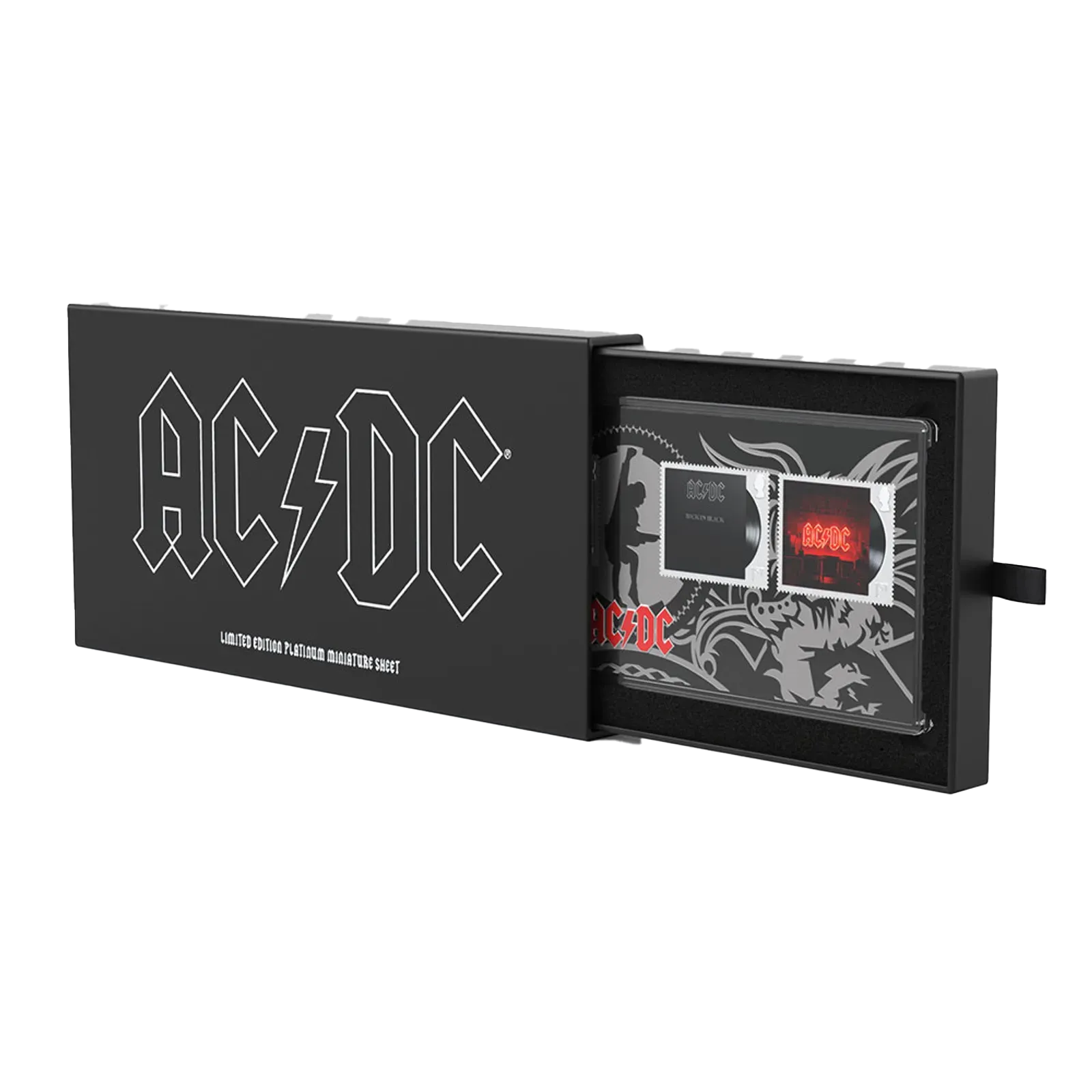 Limited to just 1,975 copies worldwide. A remarkable, limited-edition tribute to four hugely successful platinum-certified AC/DC albums. The AC/DC Miniature Sheet has been reproduced with a stunning platinum finish and features record covers for High Voltage, Highway to Hell, Back in Black and Power Up.