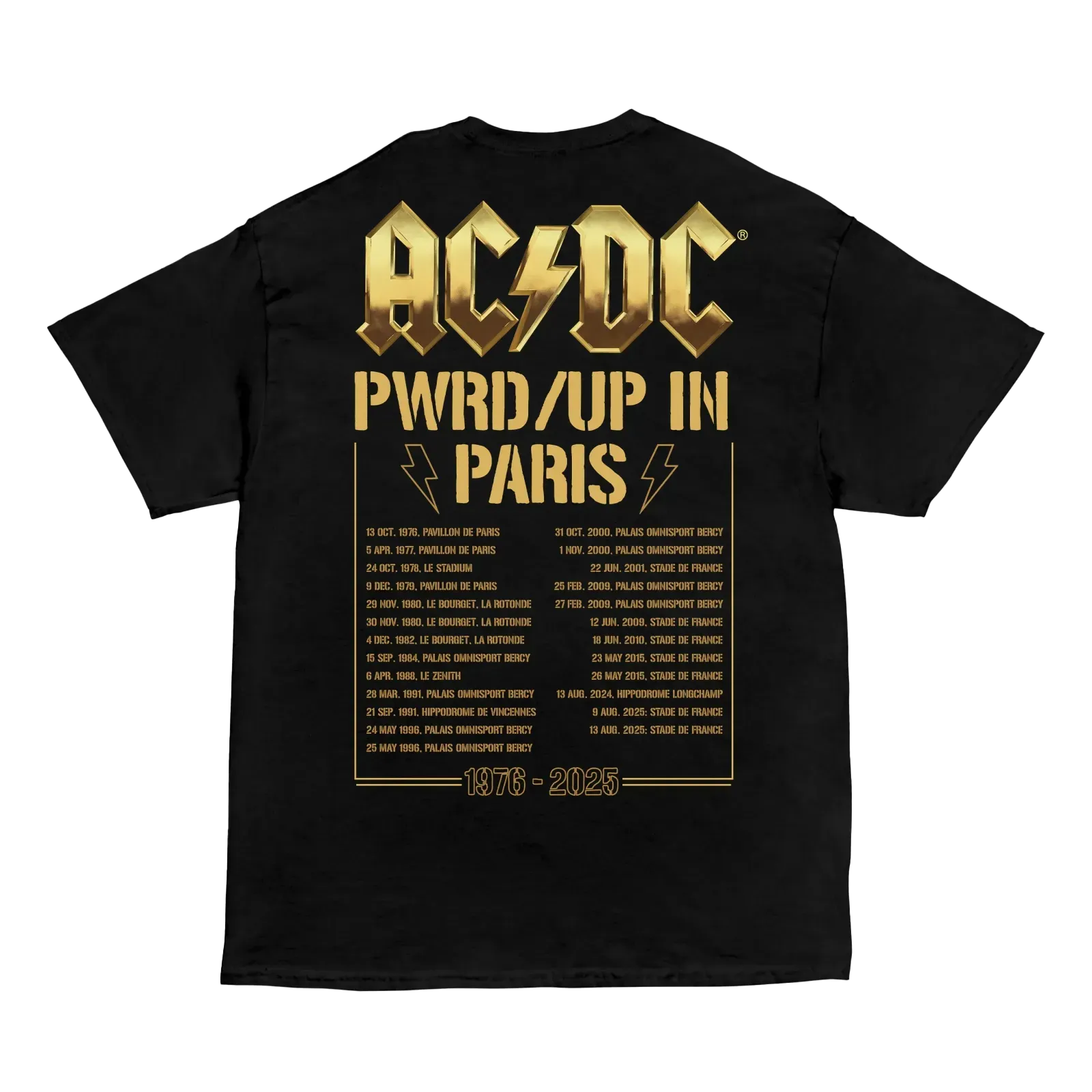 The legendary rockers are storming the stage on their electrifying PWR UP Tour. Feel the thunder and get ready to rock! Gear up with this exclusive Paris PWR UP Tour T-Shirt from the EU 2025 Tour collection, featuring all Paris shows played by the band since 1976 on the back.
