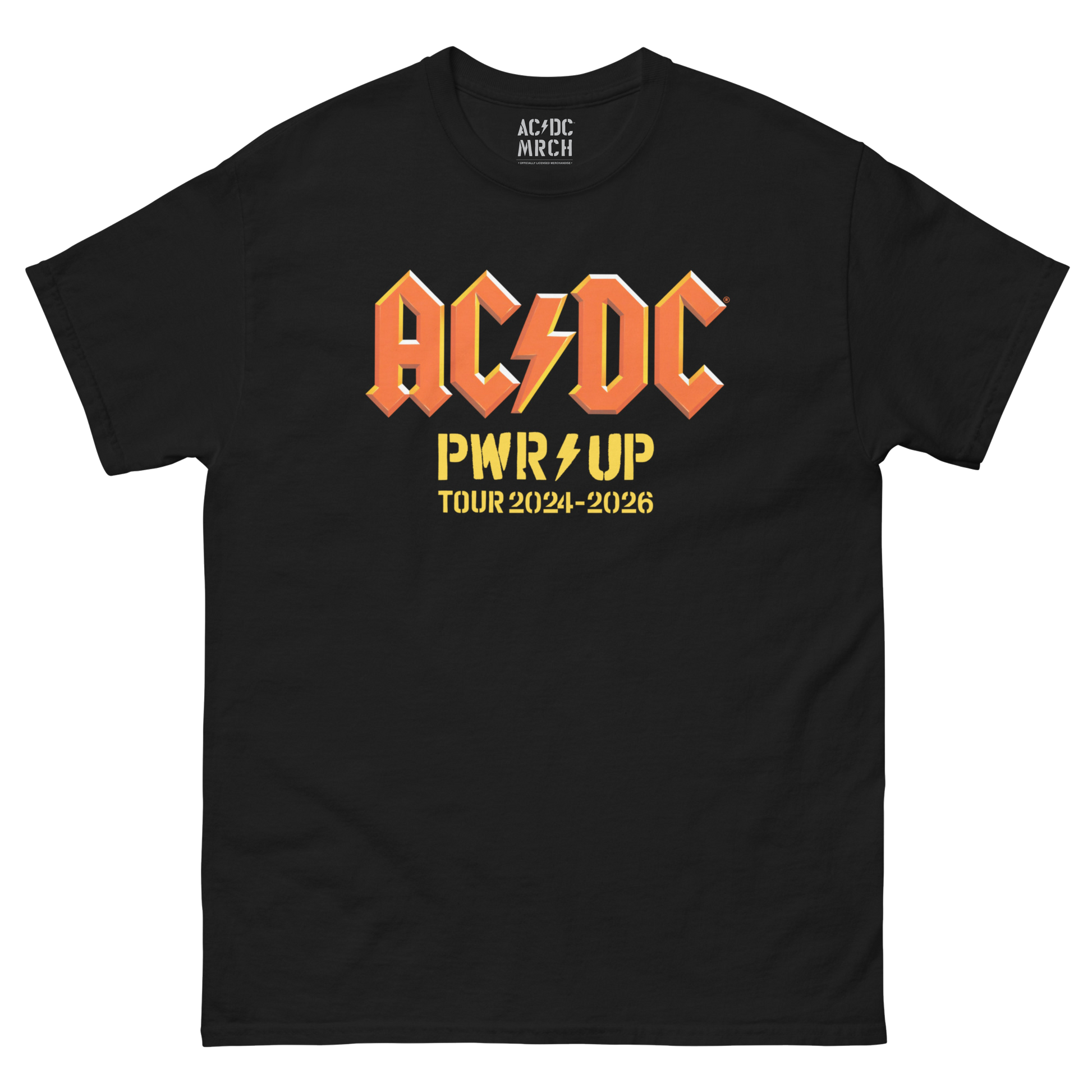 Gear up with this exclusive AC/DC PWR UP World Tour Flags T-Shirt from the 2026 Tour collection, featuring the flags from all 2024-2026 tour stops on the back.