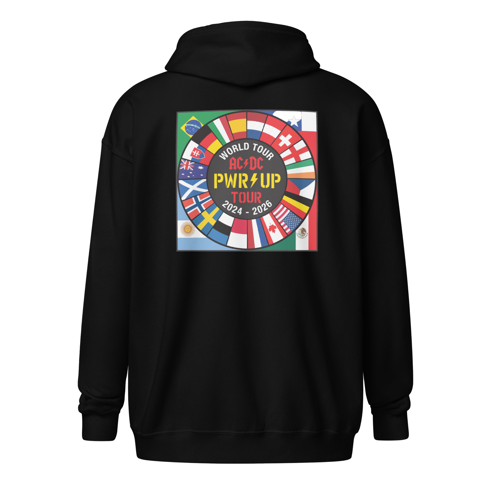 Gear up with this exclusive AC/DC PWR UP World Tour Flags Zip Hoodie from the 2026 Tour collection, featuring the flags from all 2024-2026 tour stops on the back.